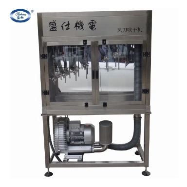 答:1、針對貼標(biāo)前的干燥要求進行設(shè)計,采用專利設(shè)計風(fēng)刀,把高速風(fēng)引致玻璃瓶表面,快速切除水份,以更低功率(高壓鼓風(fēng)機配合風(fēng)刀—···